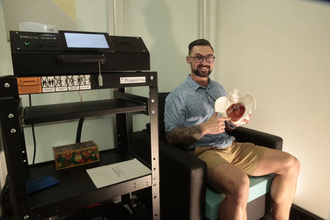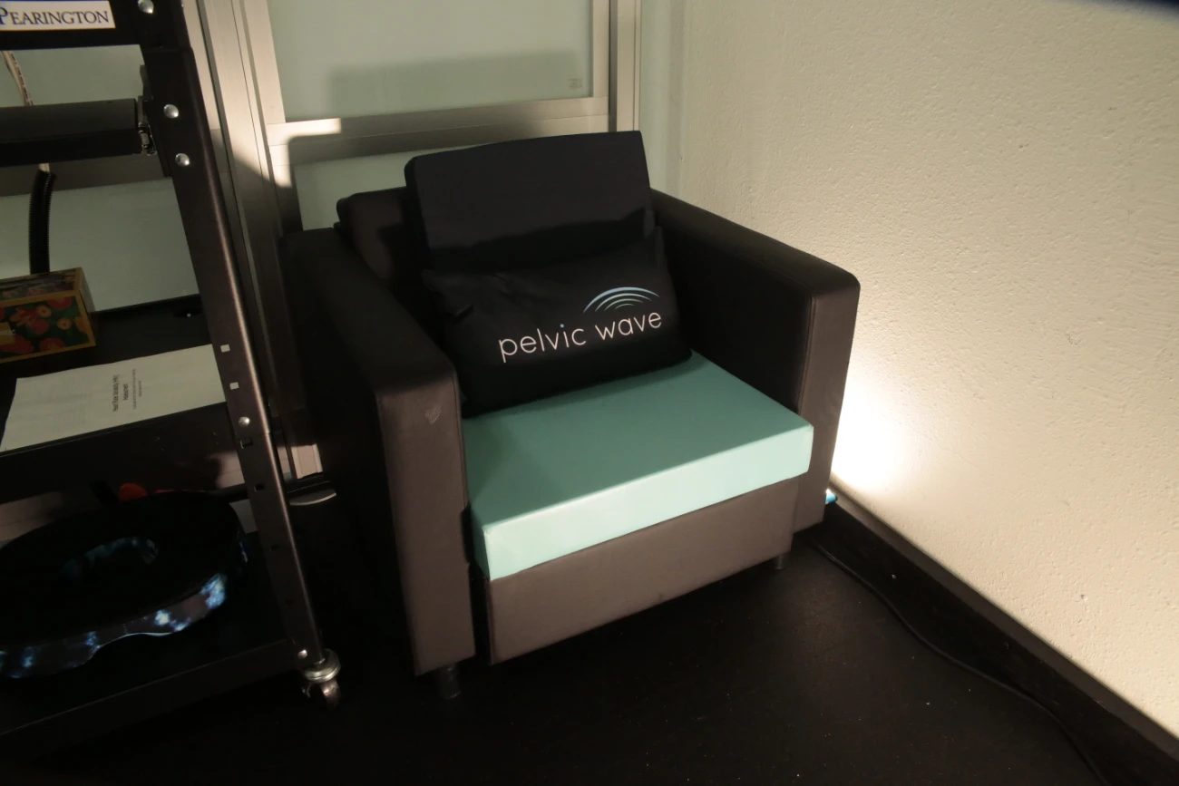 Pelvic Wave Therapy uses a specialized chair that delivers targeted stimulation to the pelvic floor muscles up to four inches deep. The treatment generates involuntary muscle contractions that mimic Kegel exercises, but at a much higher frequency and intensity than most people can achieve on their own.